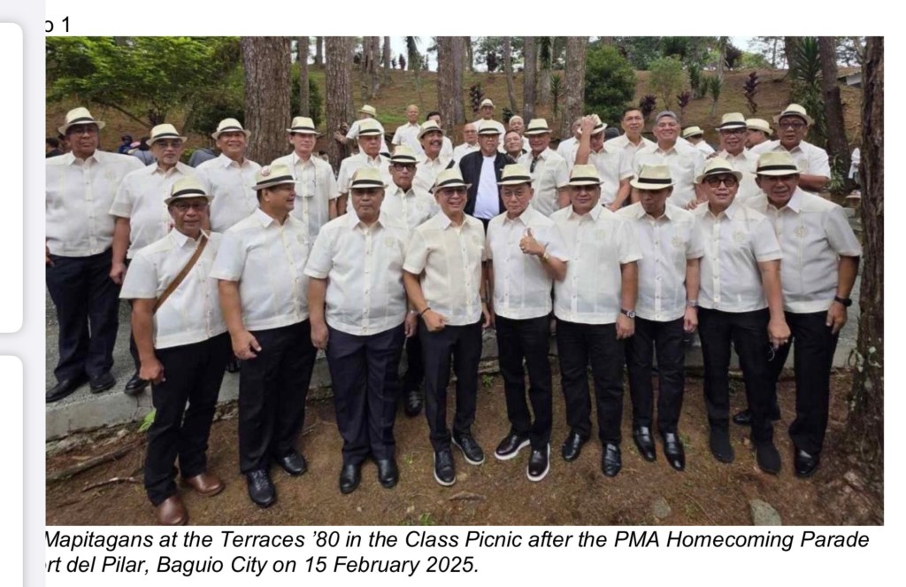 As we look ahead, I strongly encourage everyone to continue supporting the future activities of our Mapitagan class. Most especially, let us begin to prepare for one of the most significant milestones in our lives—the reenactment of our Reception as Plebes 50 years ago. This symbolic event will serve not only as a trip down memory lane but also as a celebration of how far we have come, both individually and collectively.